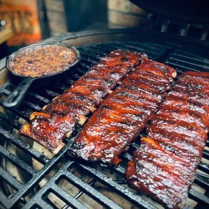 - Savusta lihaa noin 2,5 tuntia. Kääri se sitten folioon ja jätä grilliin samassa lämpötilassa vielä tunniksi. Poista ribsit foliosta. Sivele Poppamies Cola & Cherry -kastikkeella ja grillaa molemmin puolin noin 15 minuuttia kääntäen usein.