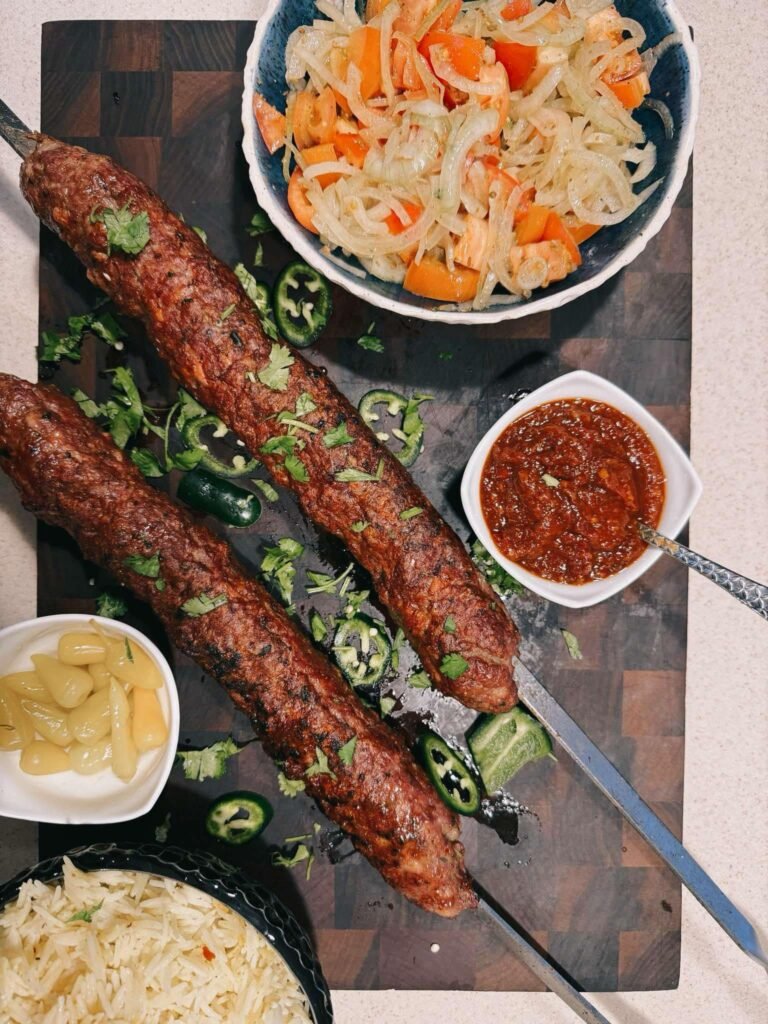 - Tarjoile riisin, lavashin, pitaleivän ja salaatin kanssa adjika-kastikkeen kera.