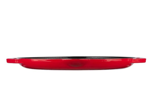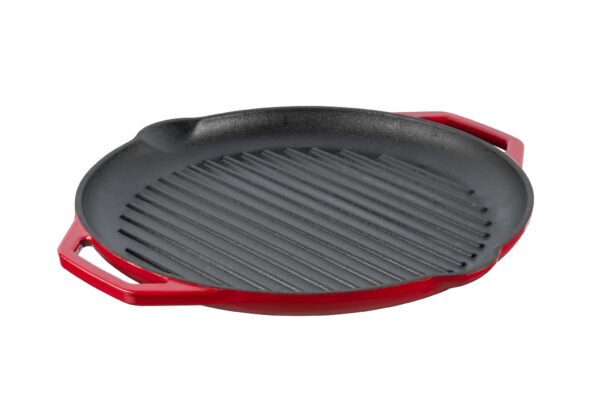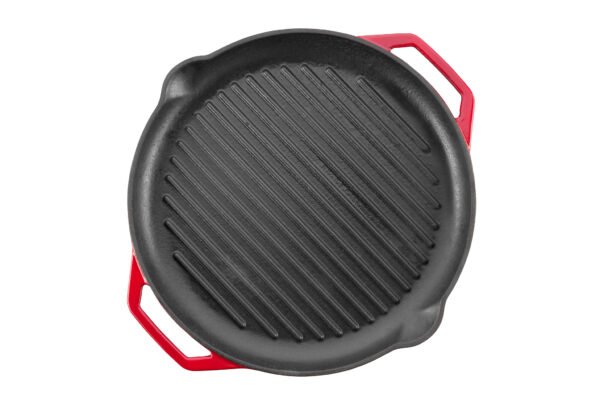Klassinen, pyöreä valurautapannu, jonka ulkopinta on värjätty emalilla ja sisäpinnassa on grilliraidat. Sopii erinomaisesti suosikkigrilliruokiesi valmistukseen.